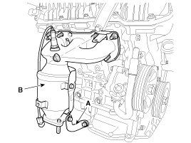 Remove the manifold stays (A), and then remove the exhaust manifolds (B).