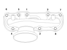 Tighten the exhaust manifold nuts in the following sequence.
