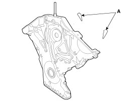 (4) Install the new gasket (A) to the timing chain cover.