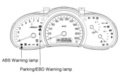 The active EBD warning lamp indicates the selftest and failure status of the EBD. However, in case the Parking Brake Switch is turned on, the EBD warning lamp is always turned on regardless of EBD functions.The EBD warning lamp shall be on: