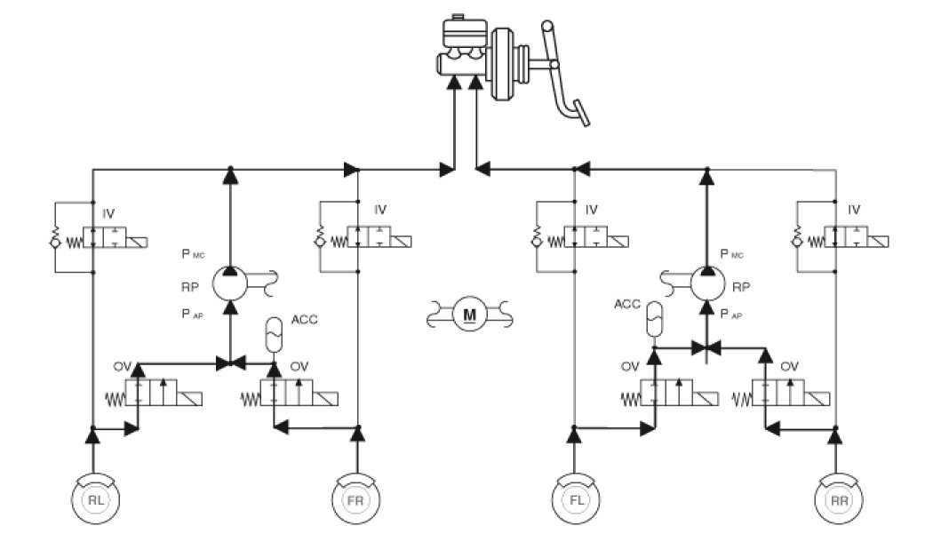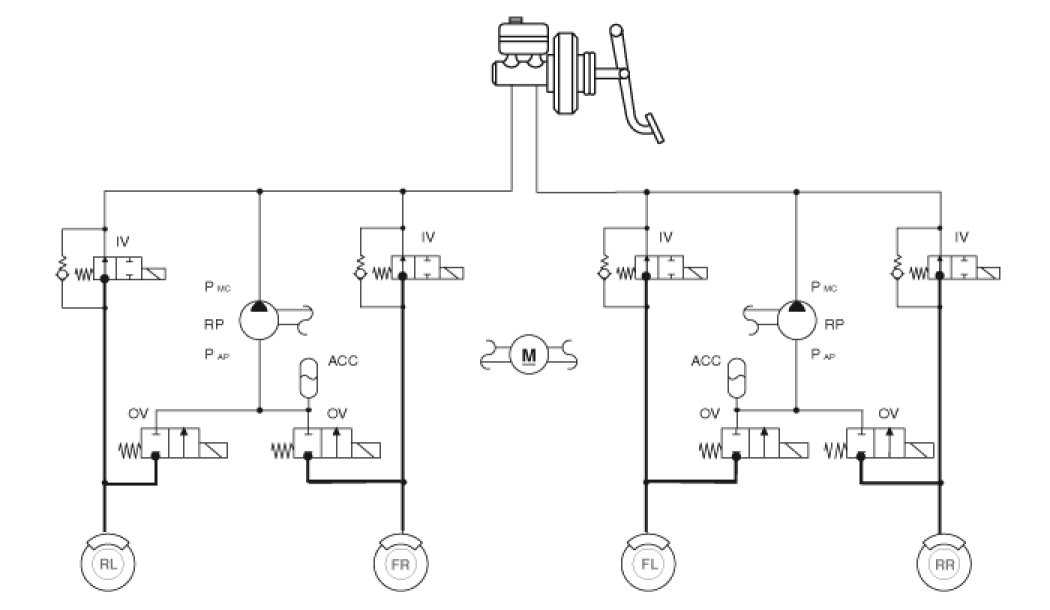 - Input of signal from the wheel speed sensors attached to each wheel.