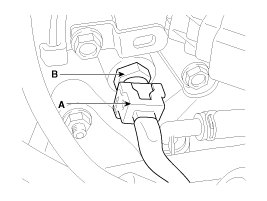 3. Disconnect the connector (A), and then remove the CVVT oil temperature sensor (B).