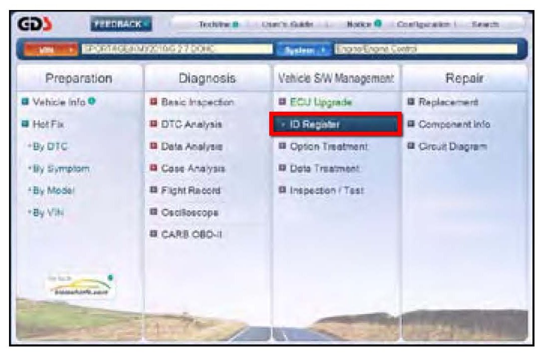 2. To start use the Global Diagnostic System (GDS). Begin by clicking on "ID Register". Click on "Auto VIN" or manually enter vehicle information on the next screen.