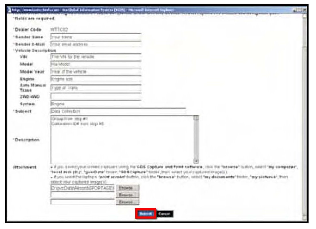 15. When the file name appears in the attachment field and all the information has been entered, click the "Submit" button.