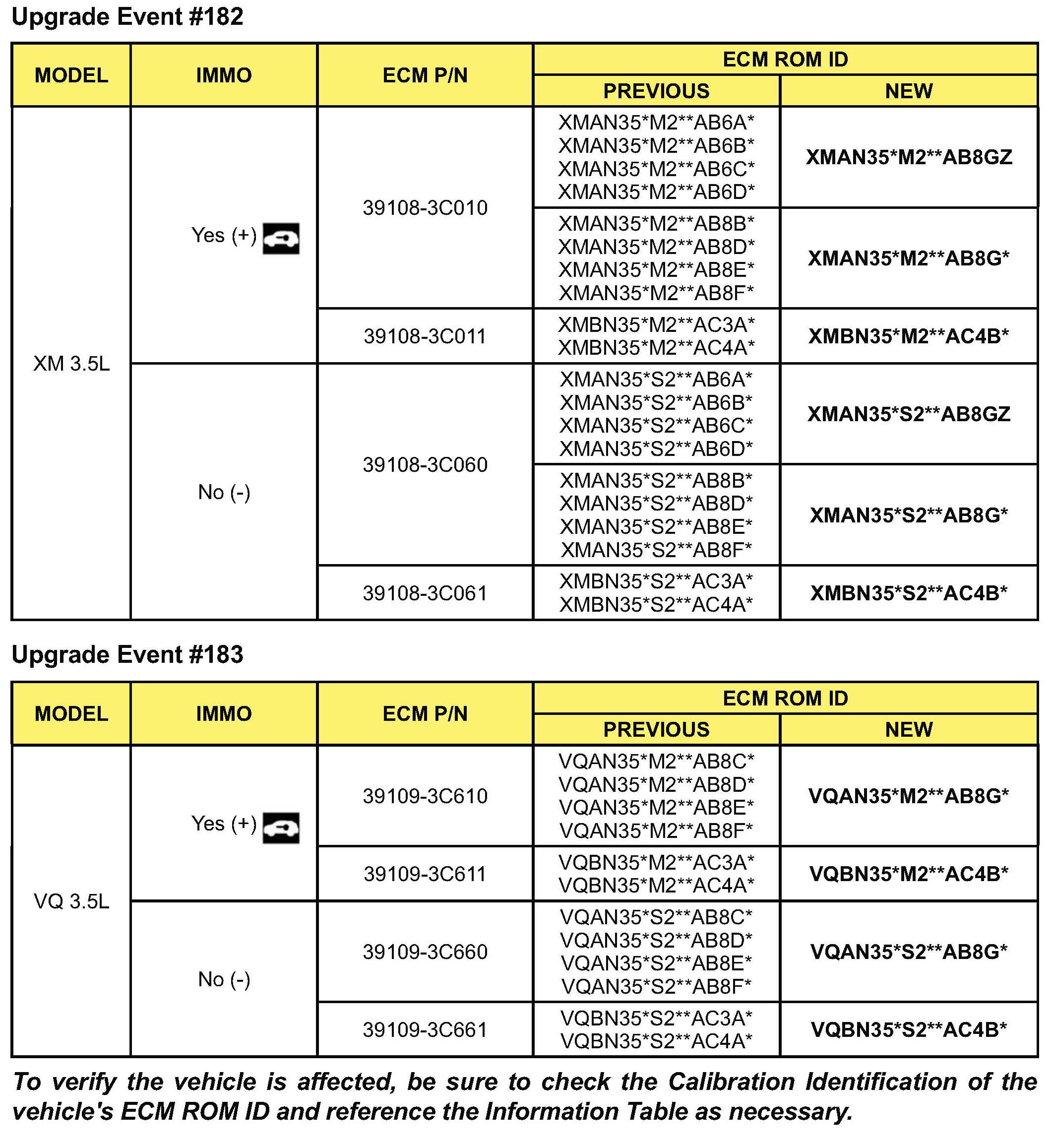 the latest reflash has been done to a vehicle you are working on, verify ROM ID using the tables in this TSB.