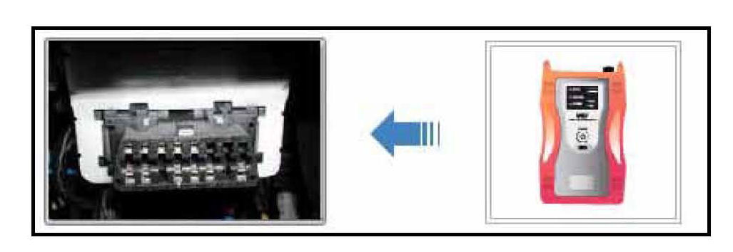 4. Connect the Main 16-pin DLC cable (GHDM - 241000) between the VCI and the OBD-II connector, located under the drivers side of the instrument panel.
