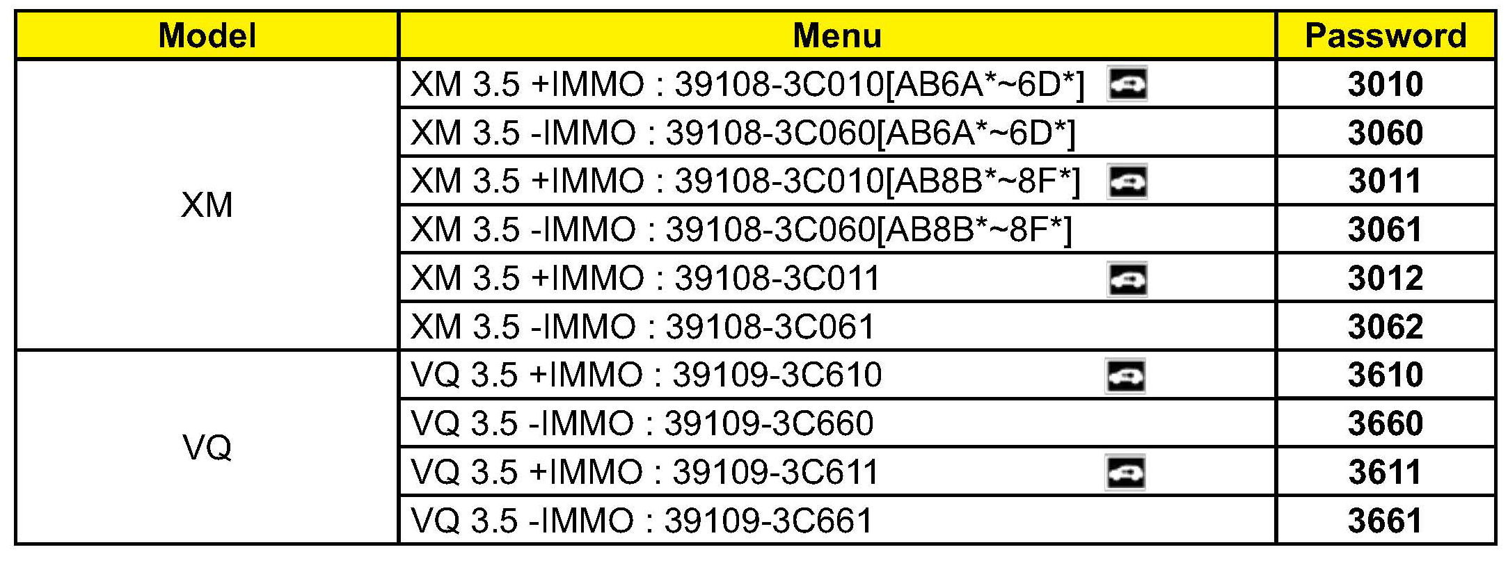 MANUAL MODE ECM UPGRADE PASSWORDS:
