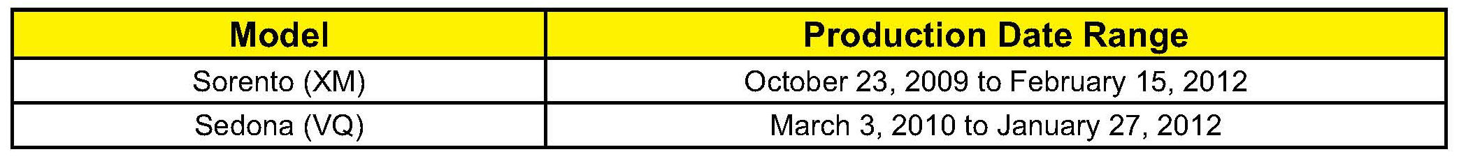 AFFECTED VEHICLE PRODUCTION RANGE: