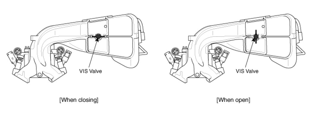 - Low/Middle Speed: Close VIS Valve -> No Interference between LH & RH banks -> Resonation Effect Maximized -> Intake Efficiency Improved