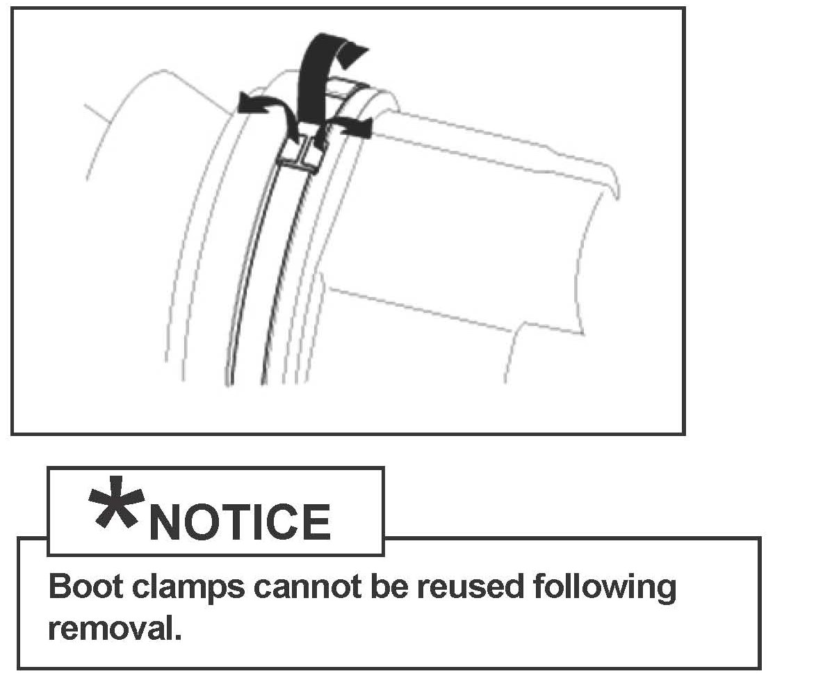2. Remove both clamps from the inner tripod joint boot (transaxle side) using a flat-bladed tool, as shown.