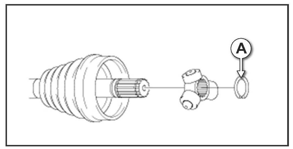 6. Using snap-ring pliers, or an equivalent tool, carefully remove the snap ring (A) from the driveshaft, as shown.