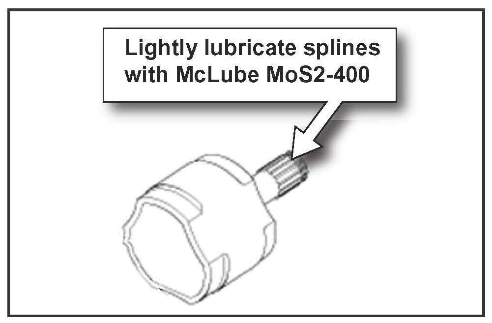 8. Use a small brush to apply a light coating of McLube MoS2-4OO high temperature grease onto splines.