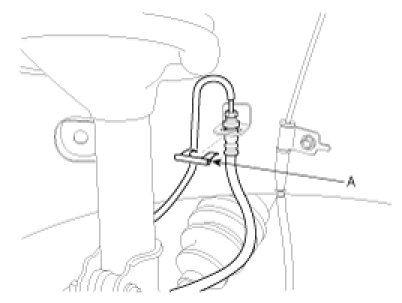 4. Remove the brake hose connecting bolt (A) from the caliper assembly.