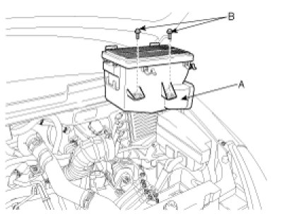 1. Remove air cleaner mounting bolts (B) from the air cleaner mounting bracket and air cleaner body (A).