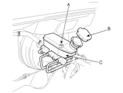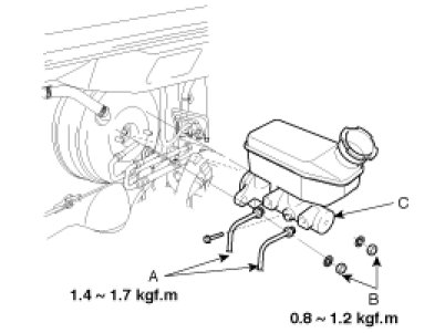 7. Remove the master cylinder(C) from the brake booster. Be careful not to bend or damage the brake lines when removing the master cylinder.