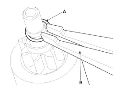 10. After removing the stop ring (A) using stop ring pliers (B).