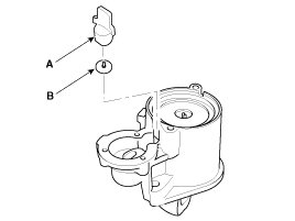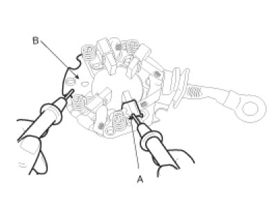 1. Check that there is no continuity between the (+) brush holder (A) and (-) plate (B). If there is continuity, replace the brush holder assembly.