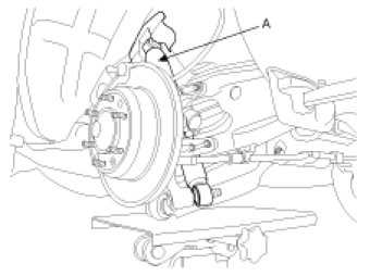 2. Install the rear shock absorber (A) to the knuckle temporarily.