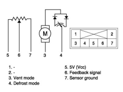 3. Verify that the mode control actuator operates to the defrost mode when connecting 12V to the terminal 3 and grounding terminal 4.