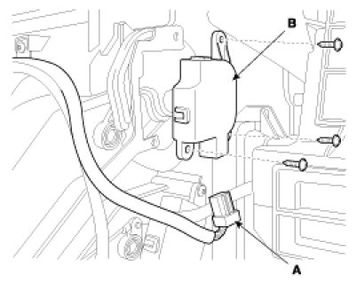 3. Disconnect the mode control actuator connector (A) after removing the air duct.