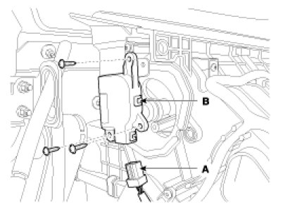 4. Loosen the mounting screws and then remove the mode control actuator (B).