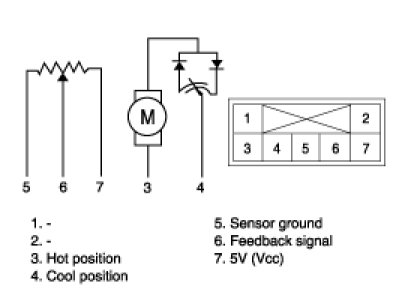 3. Verify that the temperature control actuator operates to the hot position when connecting 12V to the terminal 3 and grounding terminal 4.