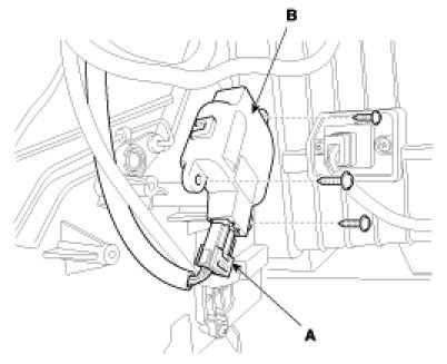 3. Disconnect the temperature control actuator connector (A) after removing the air duct.