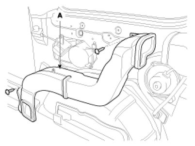6. Loosen the air duct mounting screw, and then remove the rear air duct(A).