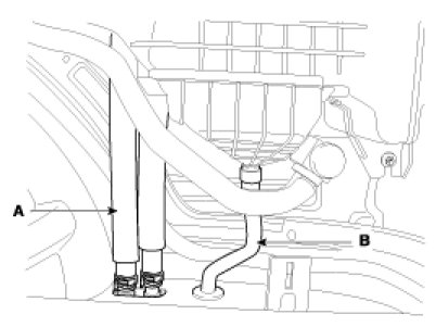 7. Loosen the refrigerant line mounting bolts, and then remove the rear refrigerant line(A).