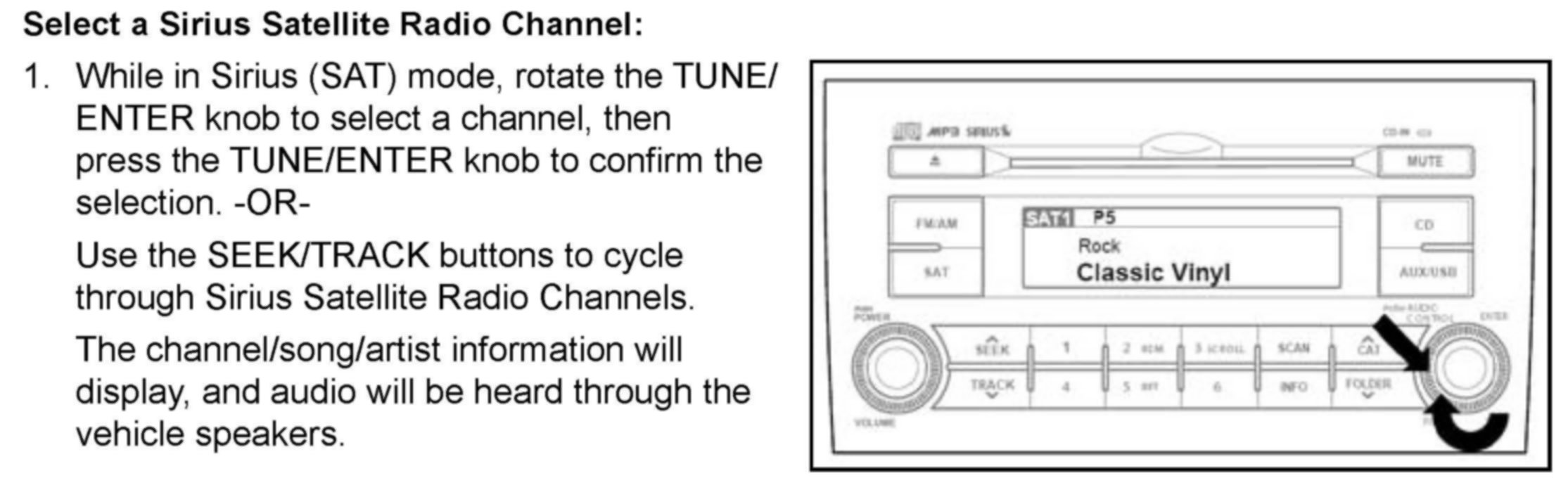 SELECT A SIRIUS SATELLITE RADIO CHANNEL