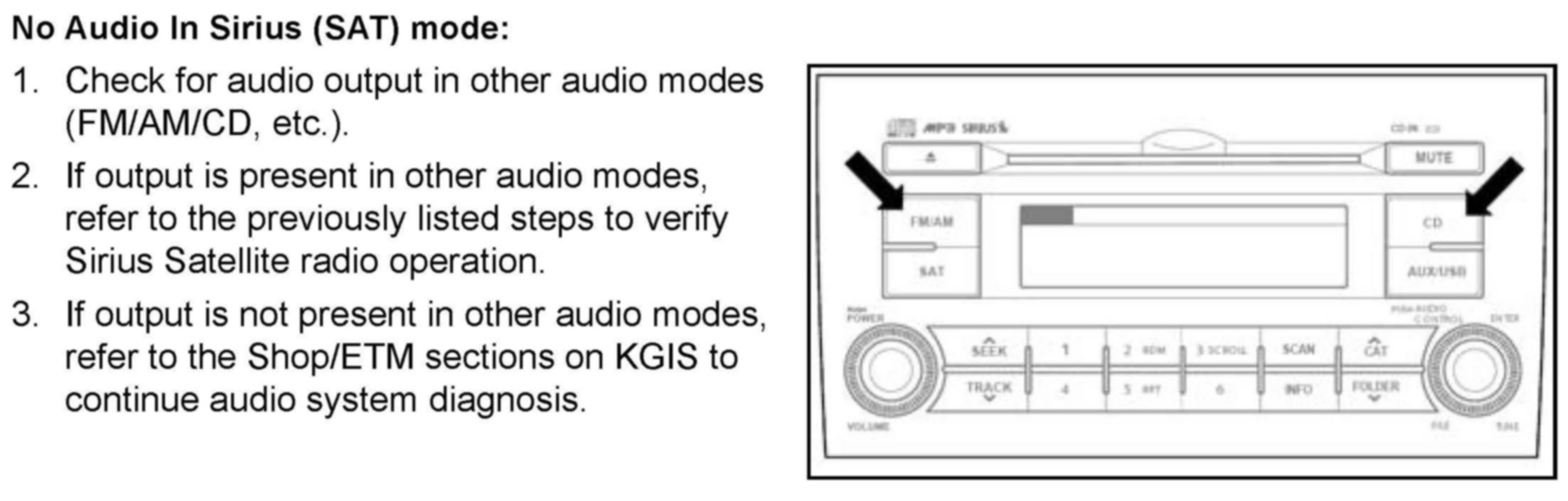 NO AUDIO IN SIRIUS (SAT) MODE