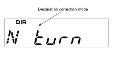 2. Push the mode button longer than 4.5 Sec to enter the declination correction mode. ('DIR' is on)