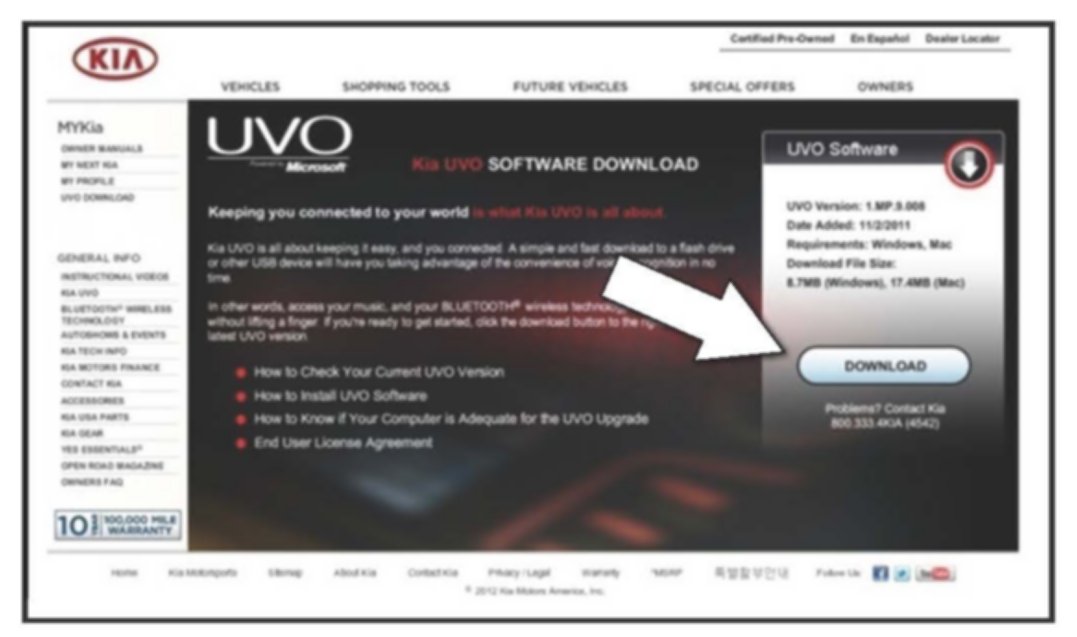 1. Customers can download UVO upgrade software via www.Kia.com.