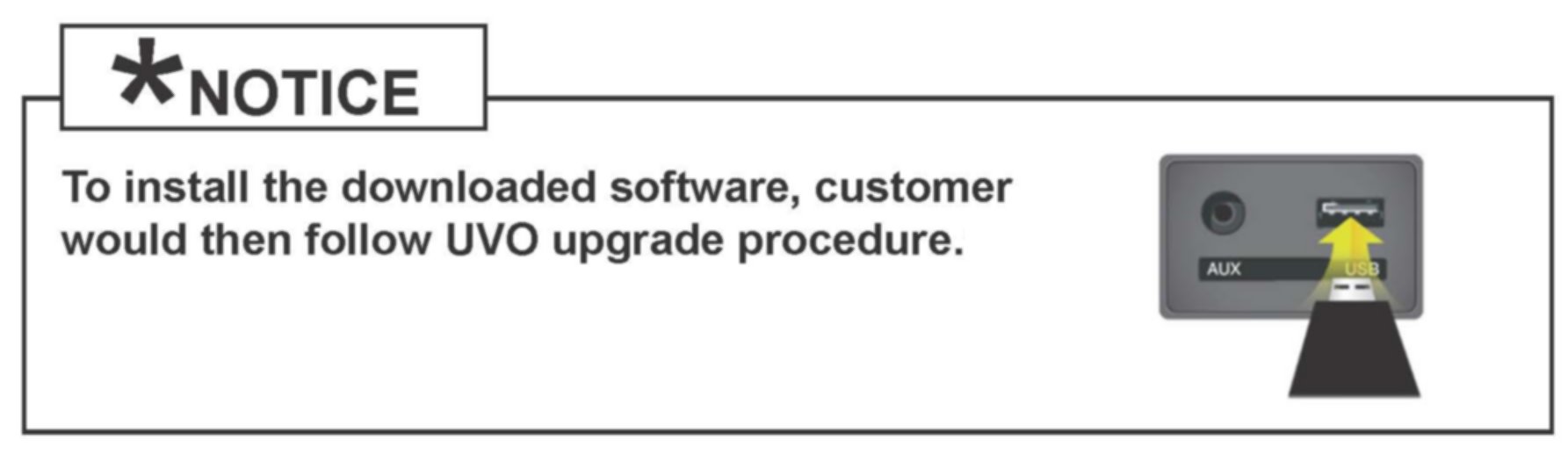 This bulletin provides the retail customers procedure for upgrading the Kia UVO (Your Voice) system. Kia UVO owners have the option to download available upgrades directly from the Kia.com website and can perform the upgrade themselves or have the dealer perform the upgrade in which case additional labor charges may apply. For customers who perform their own upgrade, Kia provides the customer with software and upgrade instructions If the customer opts to have the dealer perform the upgrade, the upgrade procedure is outlined in this bulletin.