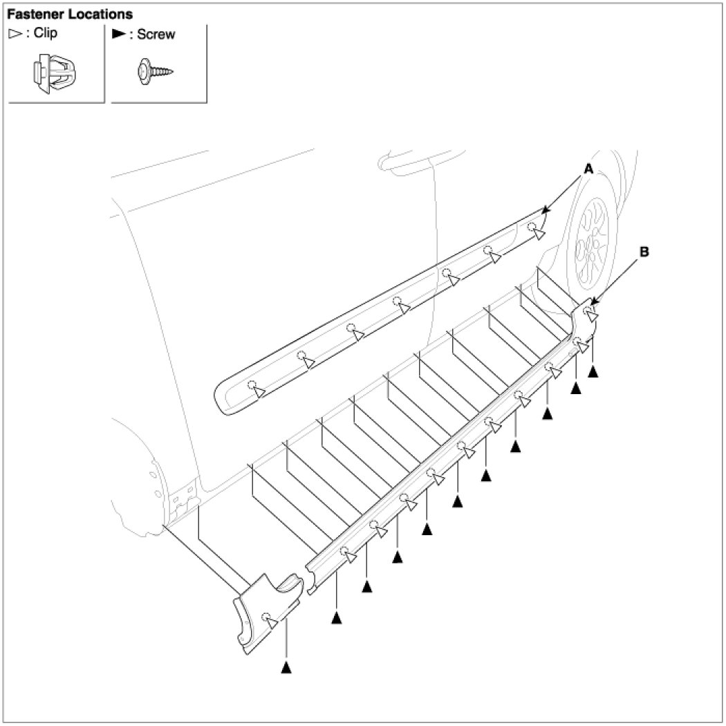 1. Remove all the screw and clips to replace the side garnish and side sill.