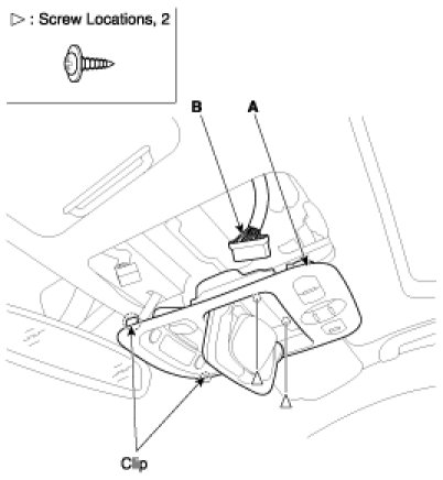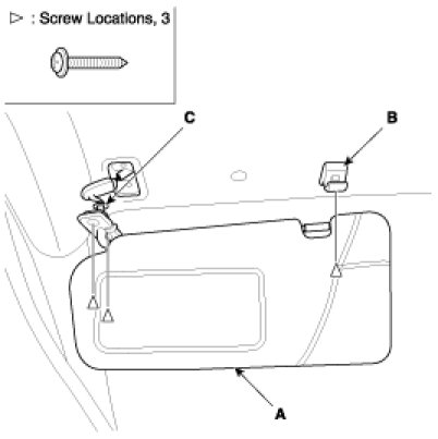 1. Loosen the mounting screws, then sunvisor (A) and holder (B).