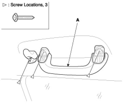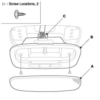1. Loosen the overhead console mounting screws, remove the overhead console assembly (A).