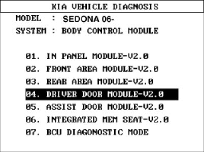 3. Select option "DRIVER DOOR MODULE".