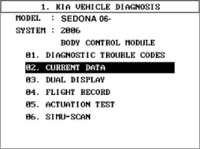 4. Select option "02. CURRENT DATA".