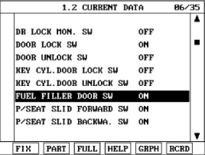 2. To check the Input Value of fuel filler door open switch, select option "09.BODY CONTROL MODULE".