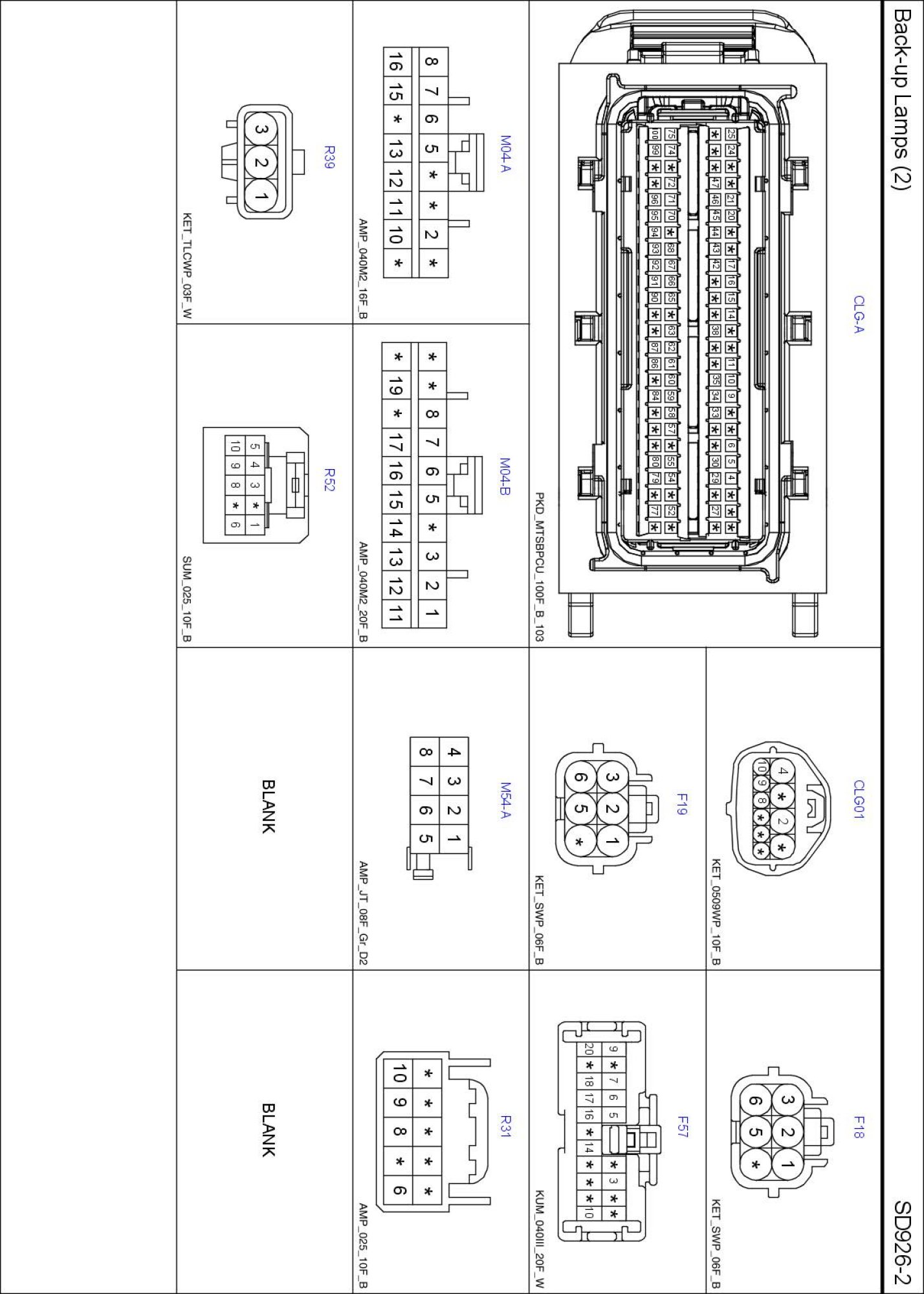 Back-up Lamps (2) Connector Pin Outs: