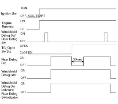 1. Once Generator "L" is ON, if the defogger is switched ON, the defogger will stay ON for 20 minutes duration.