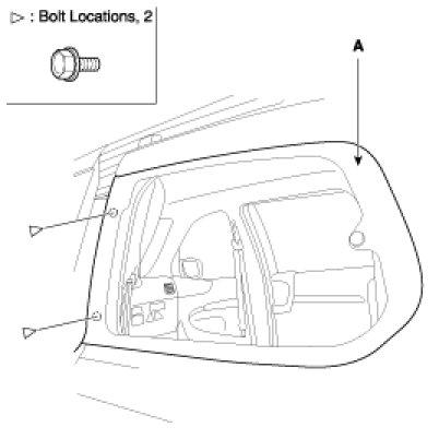 4. After loosening the quarter glass mounting bolts, then remove the quarter glass (A).