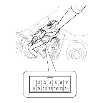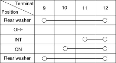 With the rear wiper & washer switch in each position, make sure that continuity exists between the terminals below. If continuity is not as specified, replace the multifunction switch.