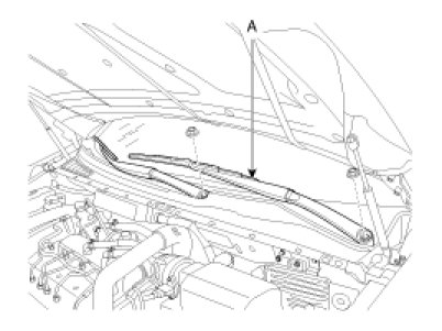 2. Remove the weather strip and the cowl top cover (A) after removing 4 fasteners.