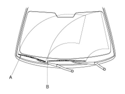 1. Remove the windshield wiper arm and blade after removing the mounting nut (A).